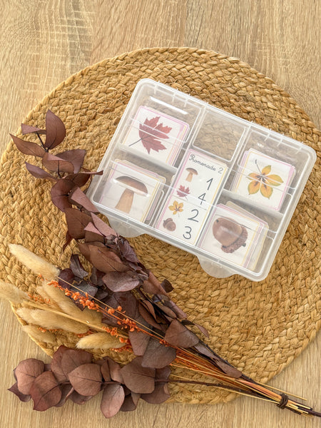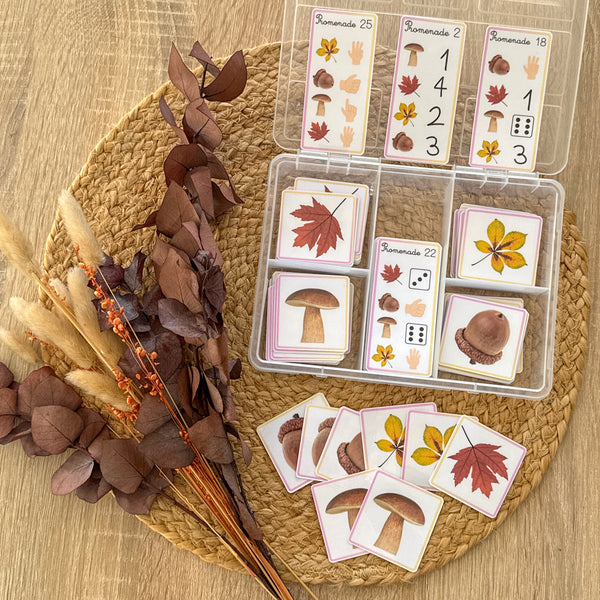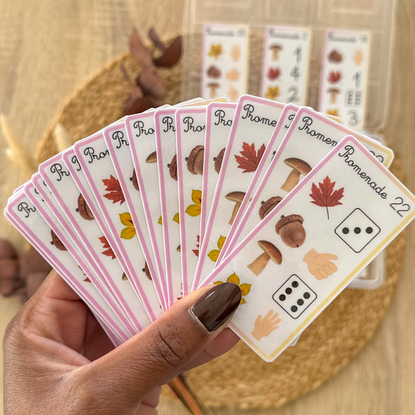 Sur le thème de l'automne, profitez de 30 cartes différentes de plusieurs difficultés (constellation de dés, chiffre et doigts de la main)